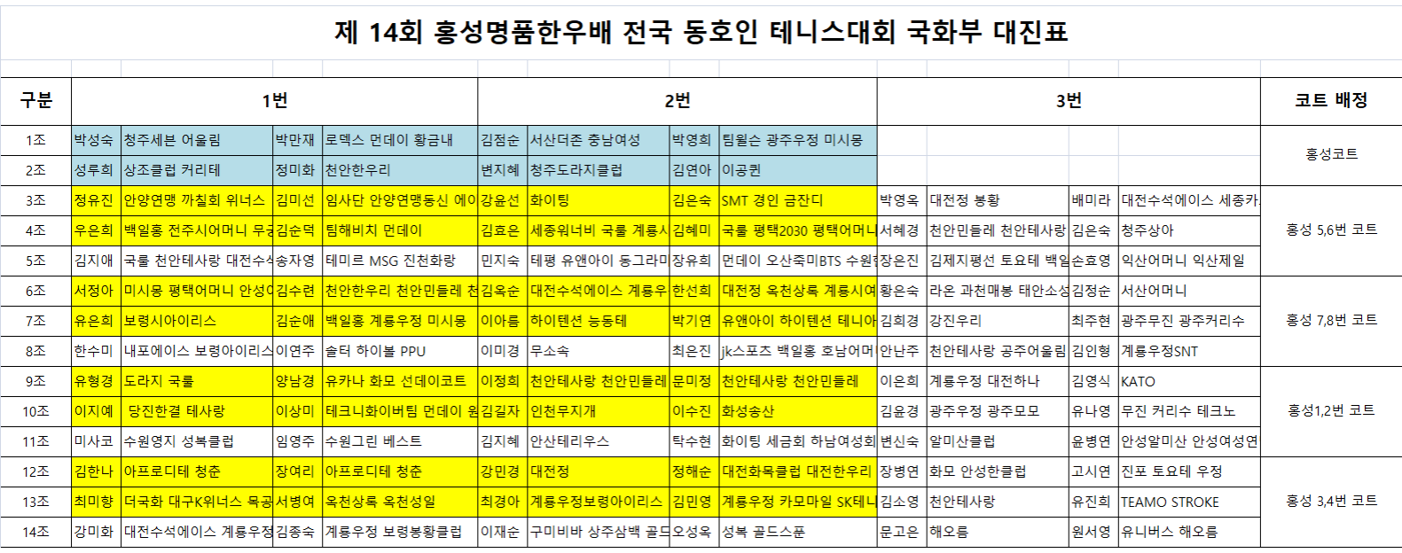 * 모든 선수는 8시 50분까지 출전신고/대진표상 노란색팀 9시 정각 첫 경기시작 | ||||||