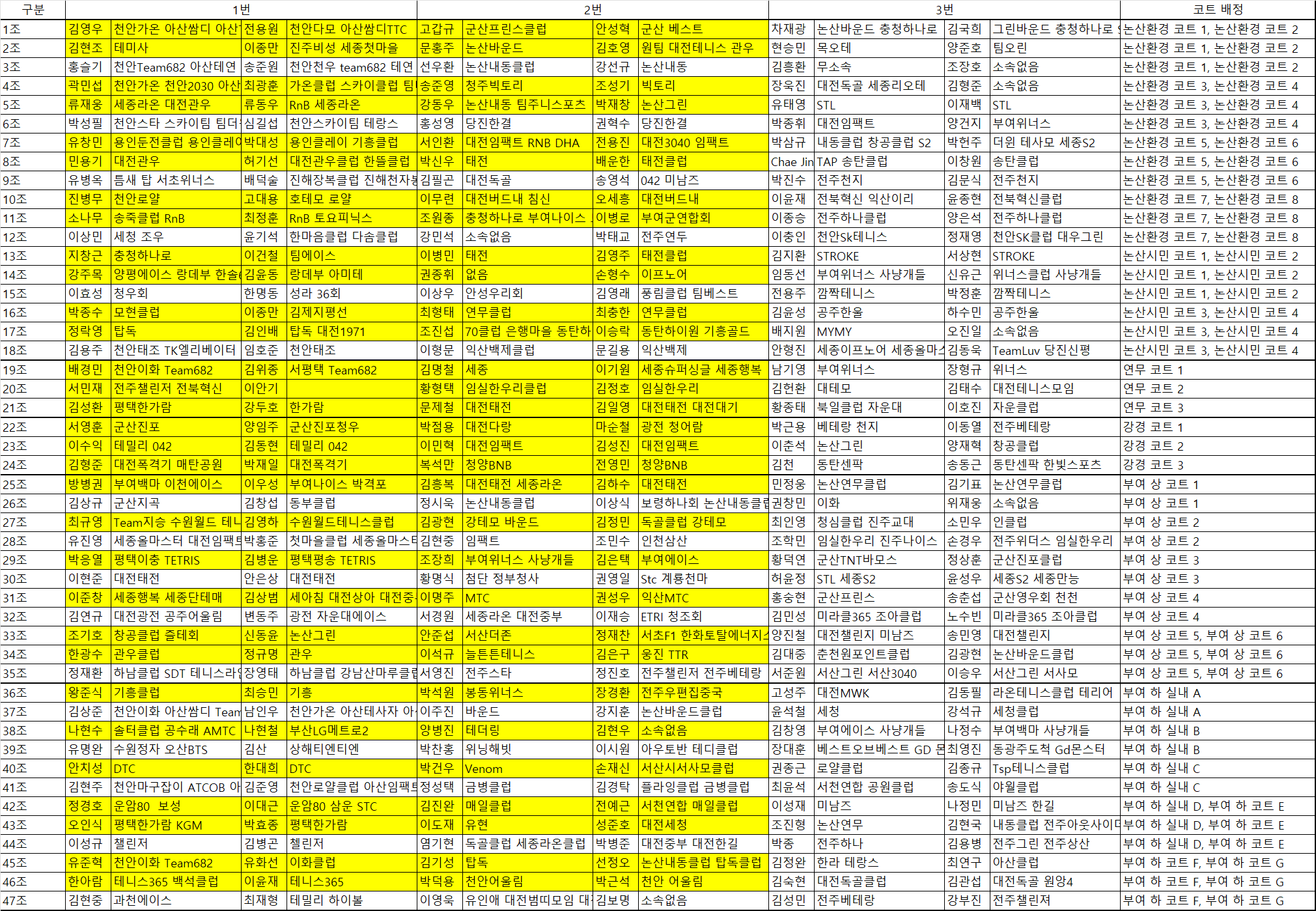 노란색표시분은 첫경기입니다 늦을시 페널티적용됩니다