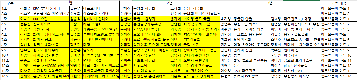 패널티 적용되오니 유의하시기 바랍니다.(1조, 2조는 9:30분까지 출전신고 바랍니다.)