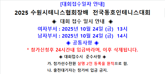 [공지] 2025 수원시테니스협회장배 접수일자안내