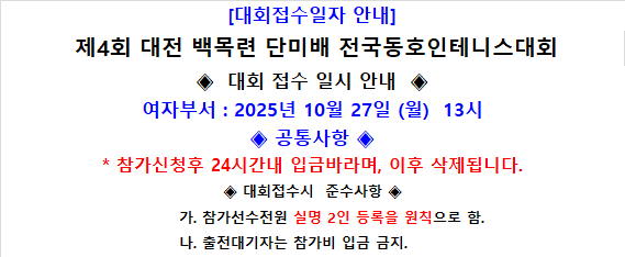 [공지] 제4회 대전 백목련 단미배 접수일자안내