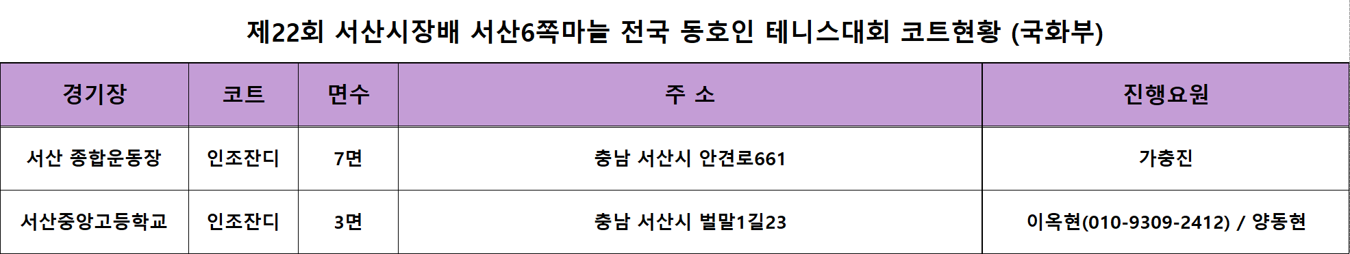제22회 서산시장배 테니스 대회 국화부 코트배정