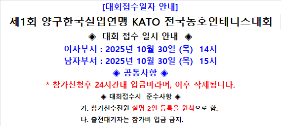 KATO에서 대회관련 새로운 정보를 신속하게 알려드립니다.