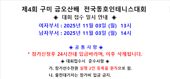 [공지] 제4회 구미금오산배 접수일자안내