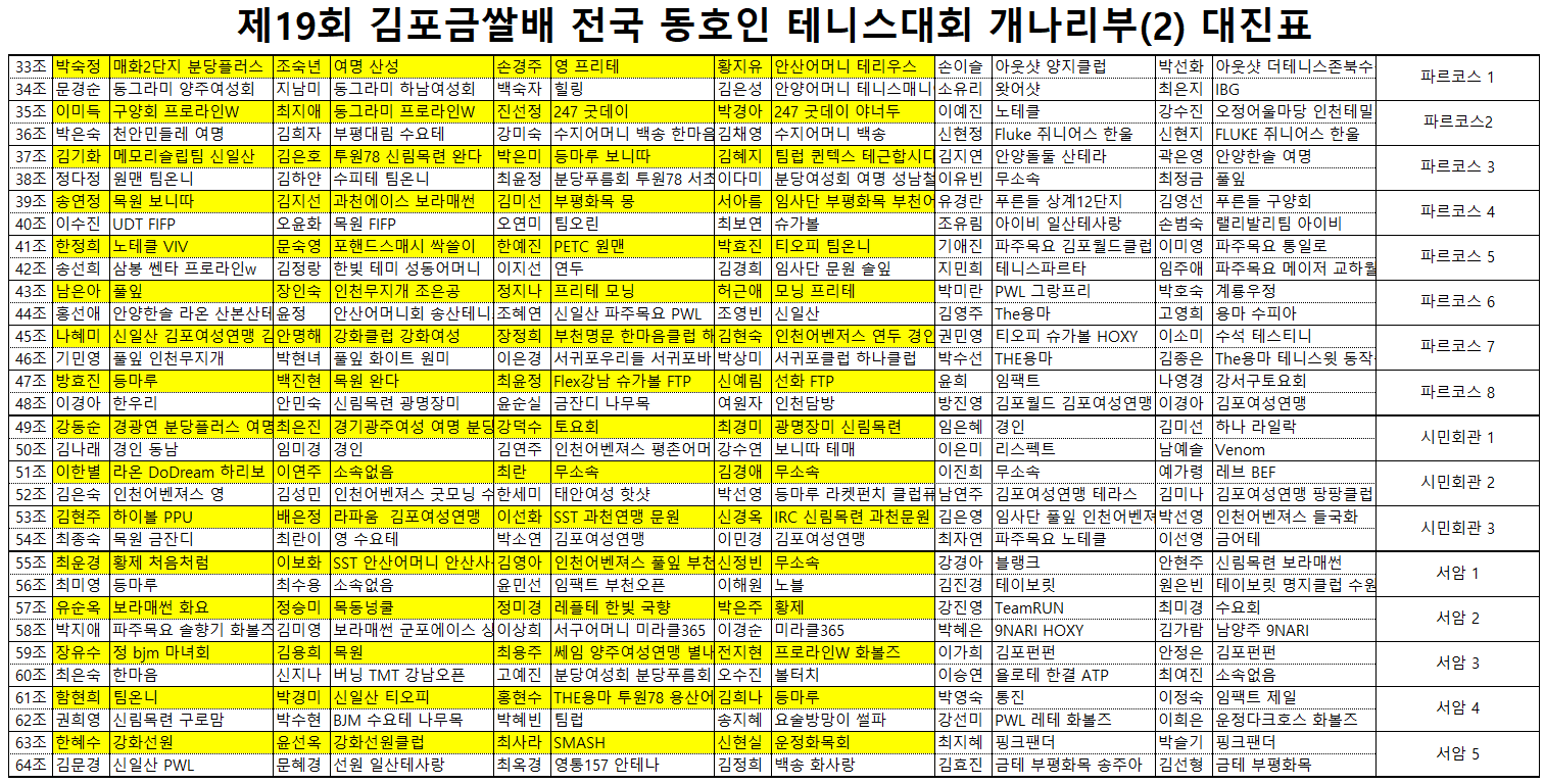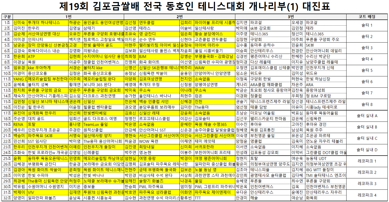제19회 김포 금쌀배 전국동호인 테니스대회 개나리부 대진표