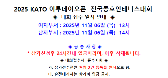 [공지] 2025 KATO 이투데이오픈 접수일자안내