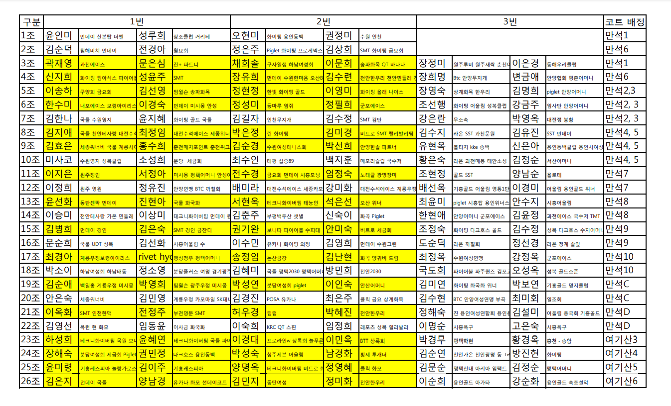 그 외 분들은 2번째게임이후 들어가니 10시20분까지 출전신고 부탁드립니다.