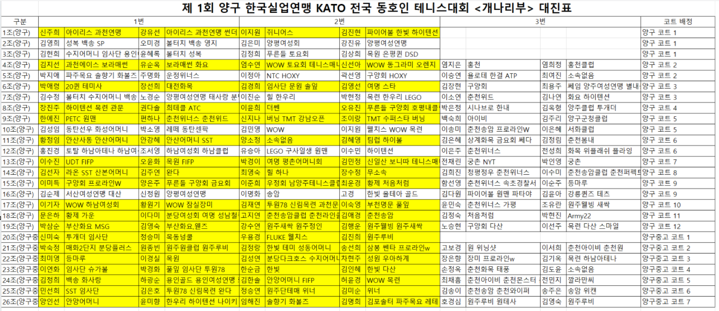 첫경기 배정되신 선수분은 9시40분까지 출전신고 해주시고