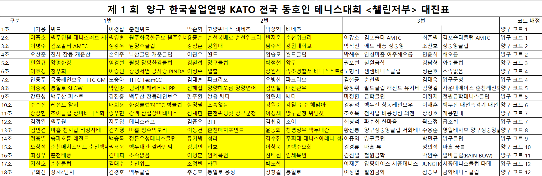 첫 경기 배정되신 선수분은 9시40분까지 출전신고 해주시고