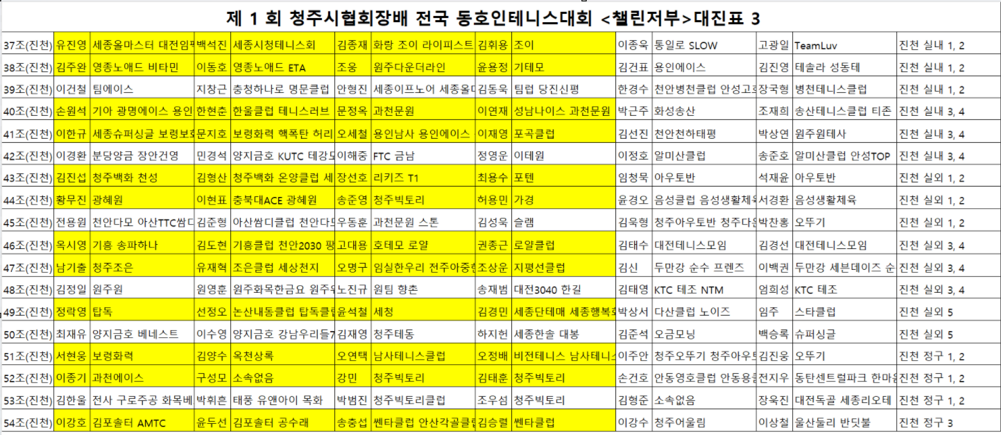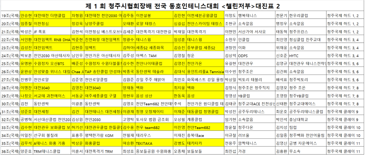 제1회 청주시테니스협회장배 전국동호인대회(챌린저부예선대진표)
