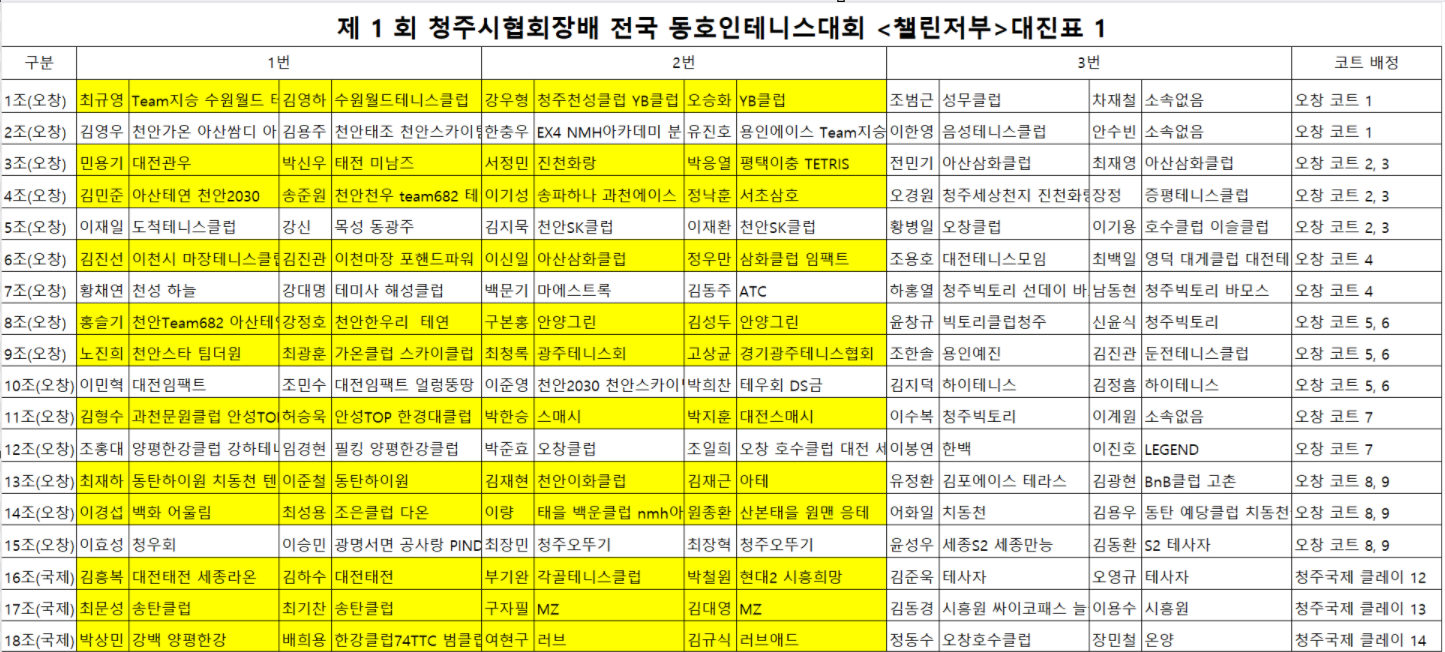 * 앞부분 조별과 끝부분 코트장 배정표 꼭 확인하세요