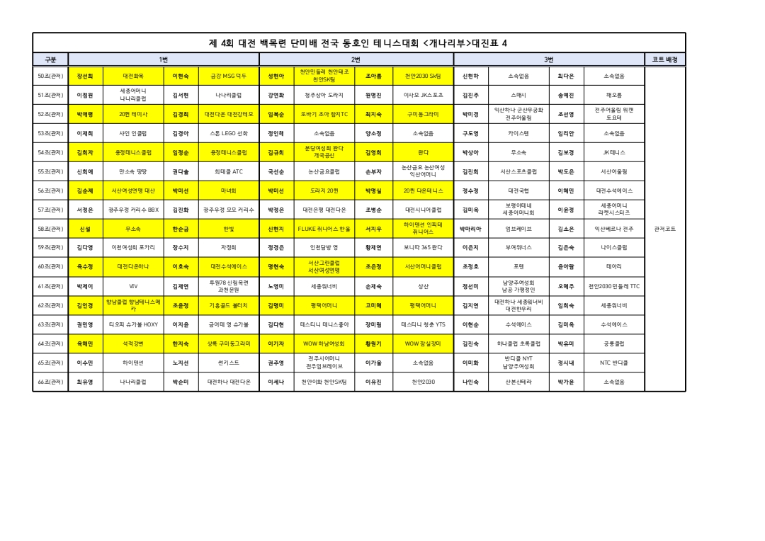 ♡백목련 단미배 개나리부 대진표 입니다♡