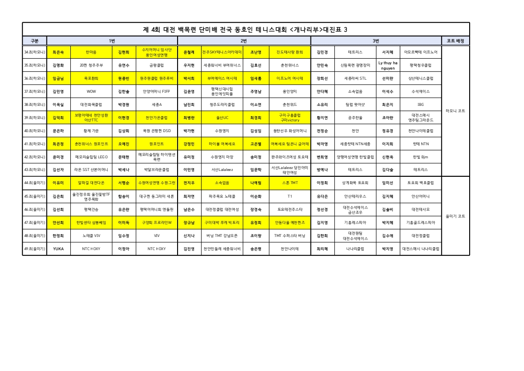 ♧대진표에 노란색 표기는 첫번째 경기입니다.
