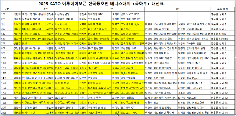 첫 경기 배정되신 선수분은 9시40분까지 출전신고 해주시고