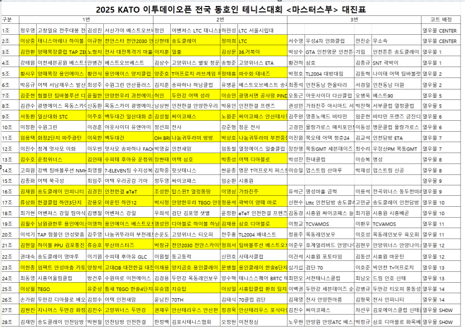 첫 경기 배정되신 선수분은 8시40분까지 출전신고 해주시고