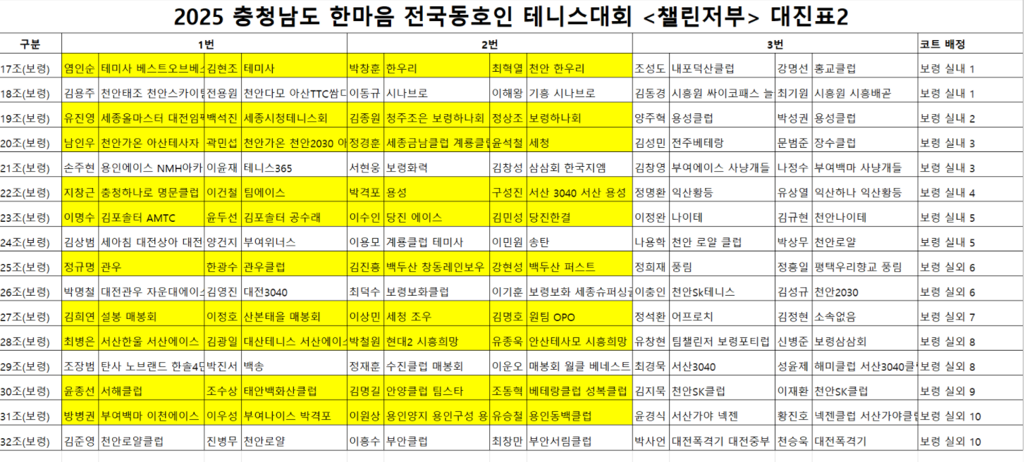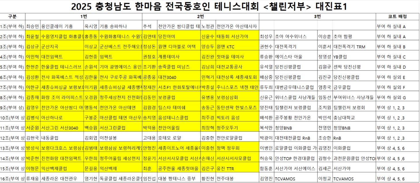 2025 충청남도 한마음 전국동호인테니스대회 챌린저부 대진표