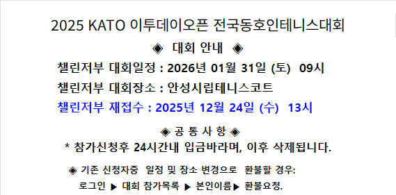 [공지] 2025 이투데이오픈 챌린저부 일정 장소 변경안내