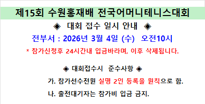 [대회접수공지] 제16회 수원홍재배 접수일자 안내