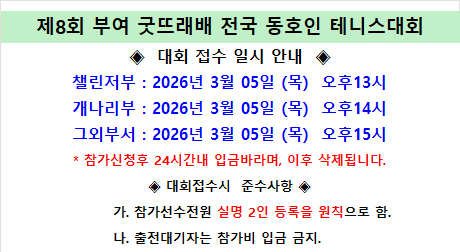 [대회접수공지] 제8회 부여굿뜨래배 접수일자 안내