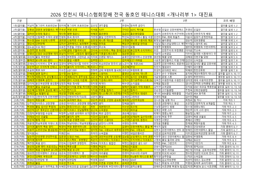 이번 2026년 인천광역시테니스협회장배 전국 동호인대회를 참석해주시는 여러분께 진심으로 감사 인사 올립니다.