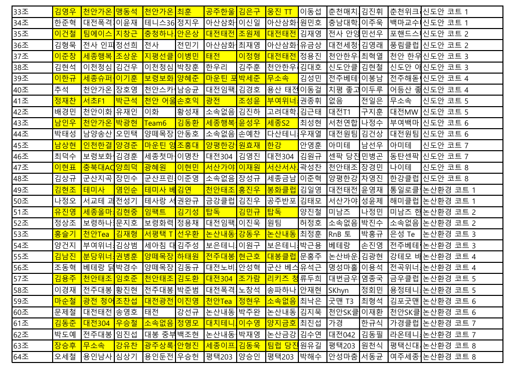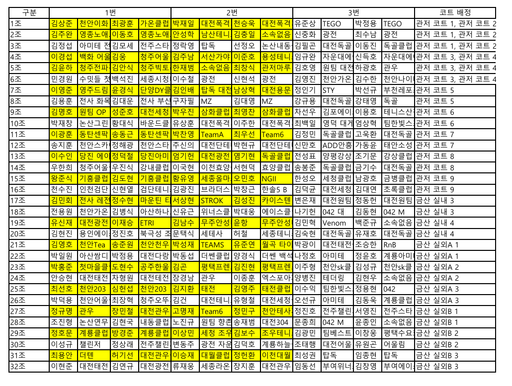 챌린저 대회 예선대진표 및 안내사항을 아래와 같이 공지드리오니 참고하셔서 다치지 않고 건강하게 즐기셨으면 좋겠습니다.