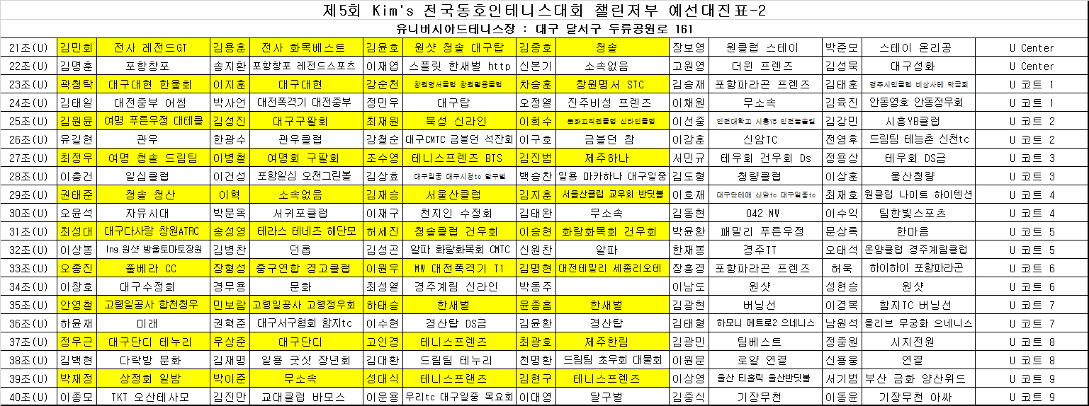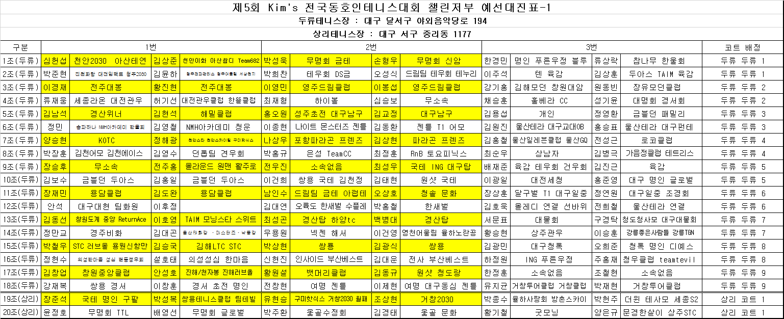 제5회 kim's 전국동호인테니스대회 챌린저부 예선대진표