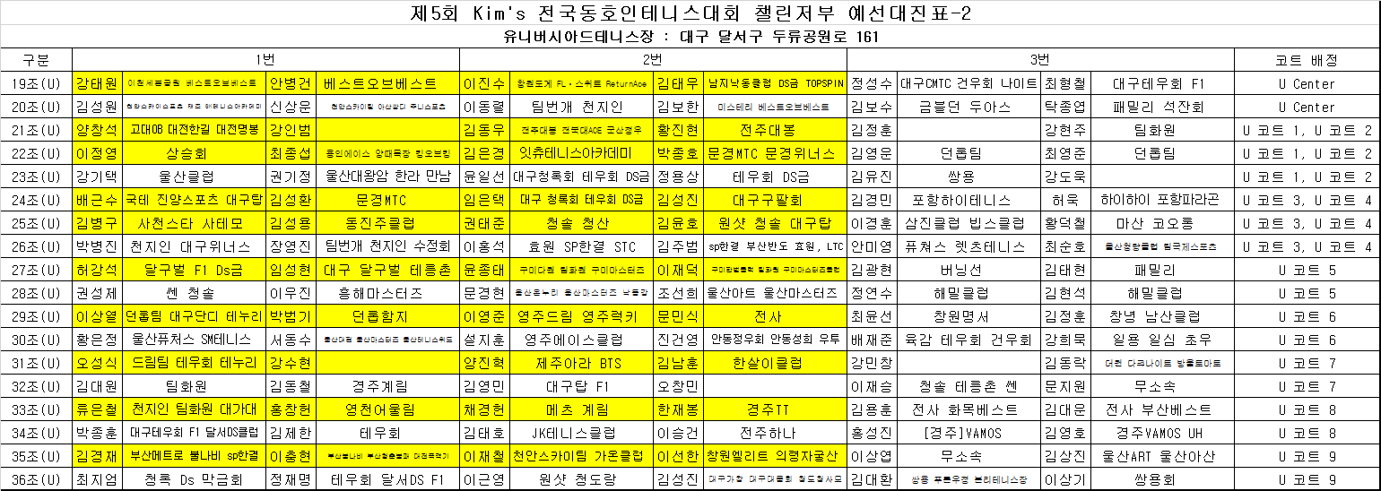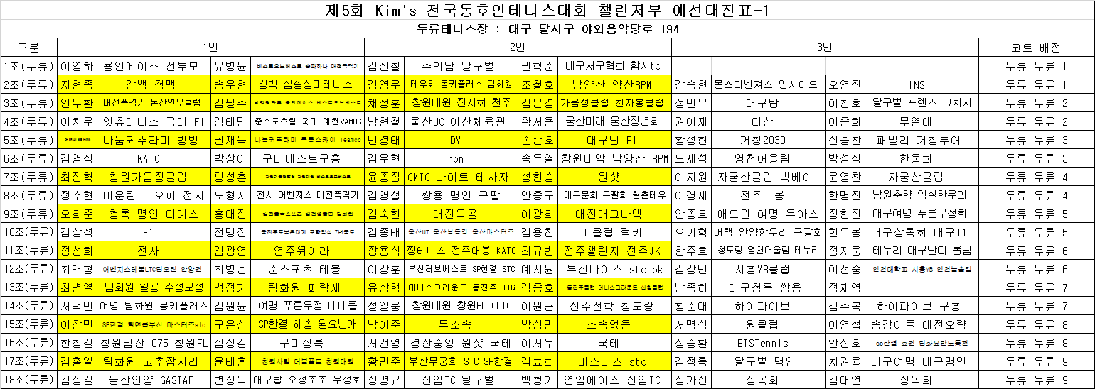 제5회 kim's 전국동호인테니스대회 마스터즈부 예선대진표