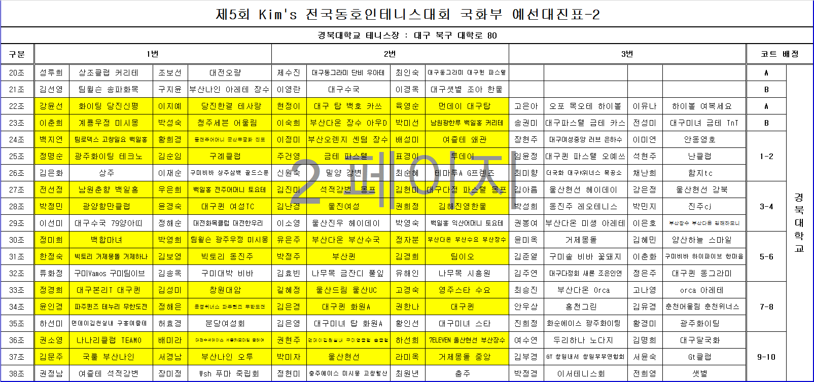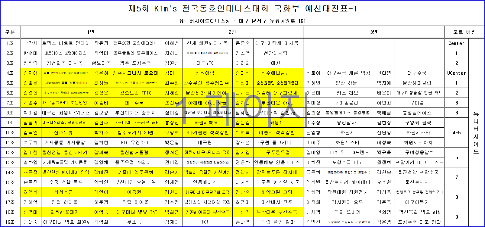 1코트에 2개조가 편성되었을 경우