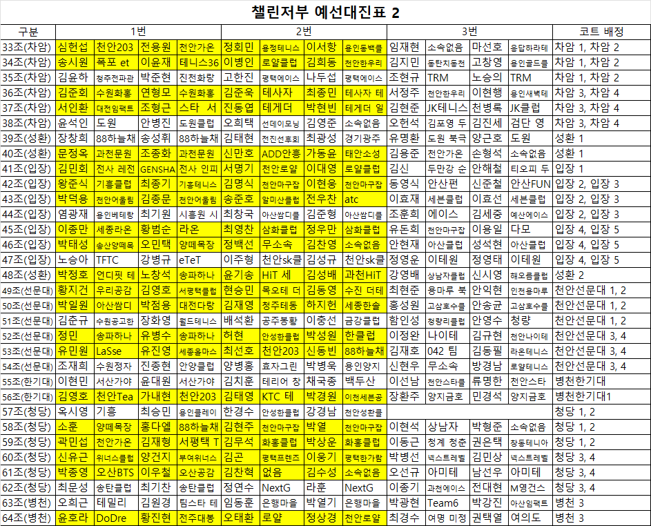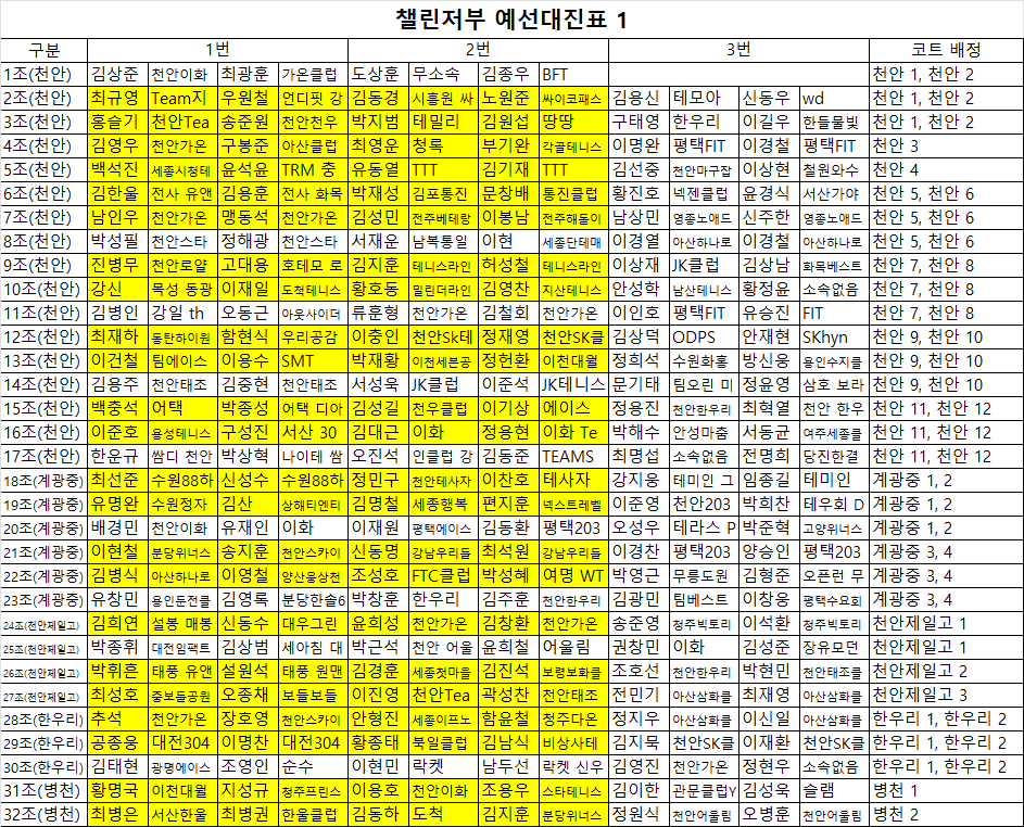 예선대진표를 다음과 같이 안내해 드립니다.(KATO 밴드에도 공지하였습니다.)