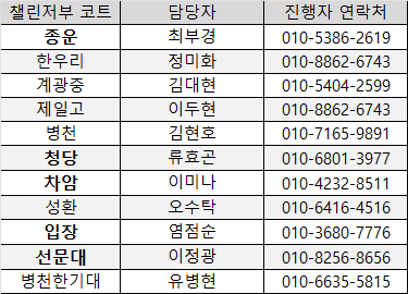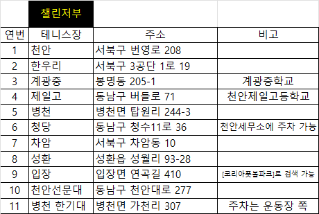5. 테니스코트 주소와 담당자 연락처는 맨 아래에 첨부하였습니다.