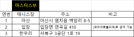 5. 테니스코트 주소와 담당자 연락처는 맨 아래에 첨부하였습니다.