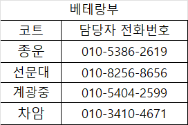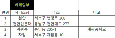 5. 테니스코트 주소와 담당자 연락처는 맨 아래에 첨부하였습니다.