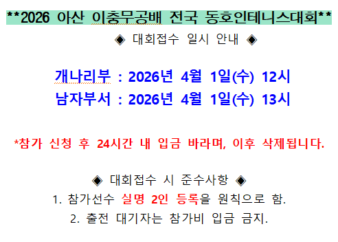[대회접수공지] 2026 아산 이충무공배 전국 동호인테니스대회