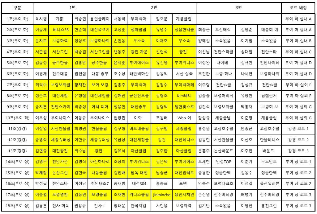 제8회 부여굿뜨래배 전국 동호인 테니스대회 챌린저부(2026.3.29. 일요일) 예선대진표를 아래와 같이 안내해 드립니다.
