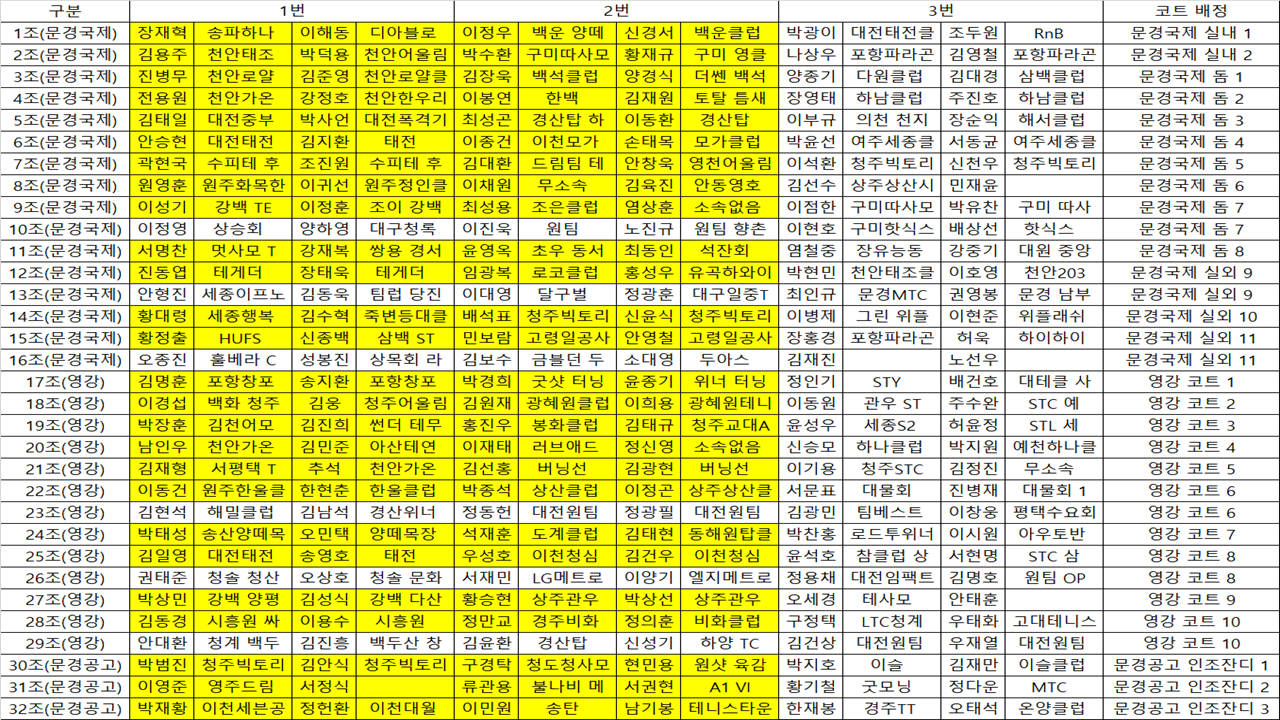 노란색 표기는 첫번째 경기입니다.