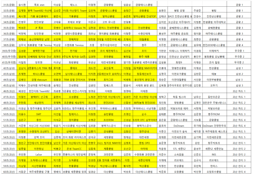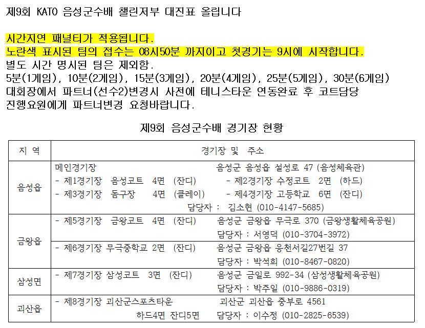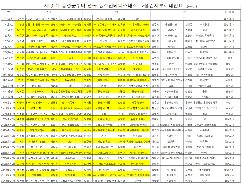 [대진표 - 챌린저부] 제9회 음성군수배 전국동호인테니스대회