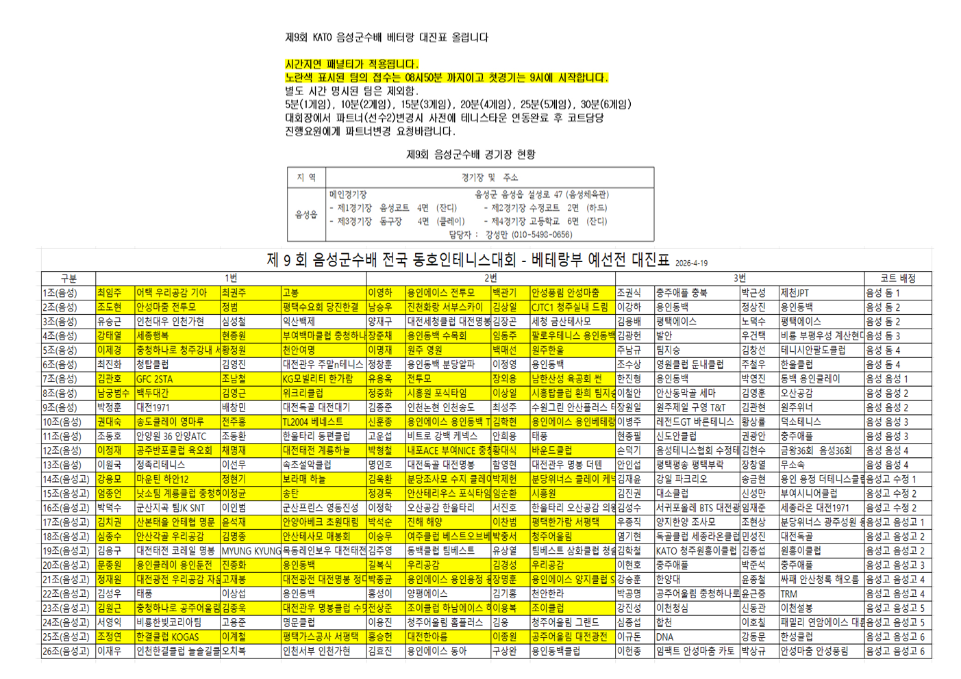 [대진표 - 베터랑부] 제9회 음성군수배 전국동호인테니스대회
