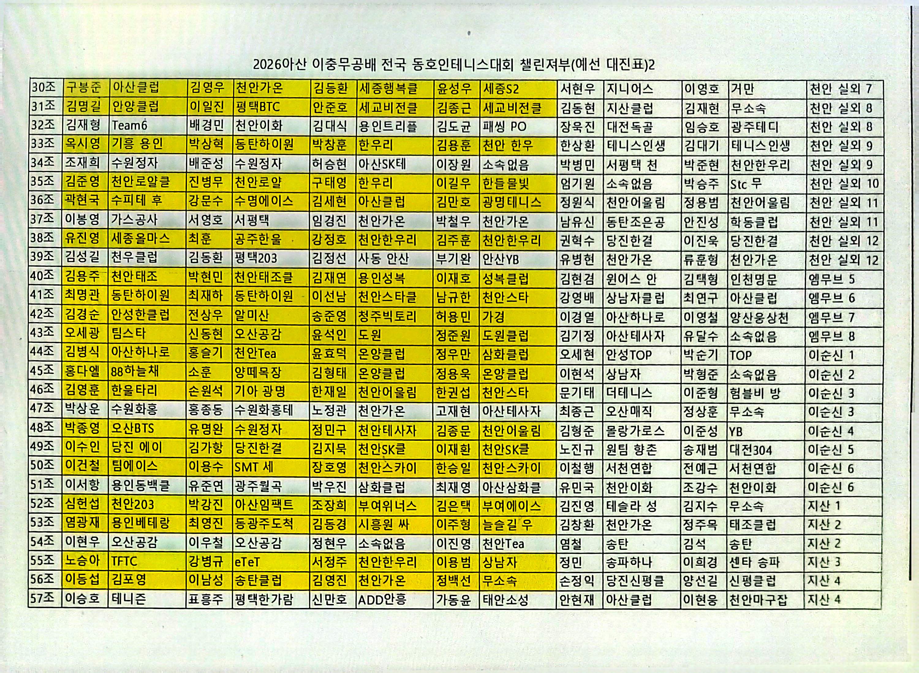 2026 아산이충무공배 전국동호인 테니스대회 챌린져부