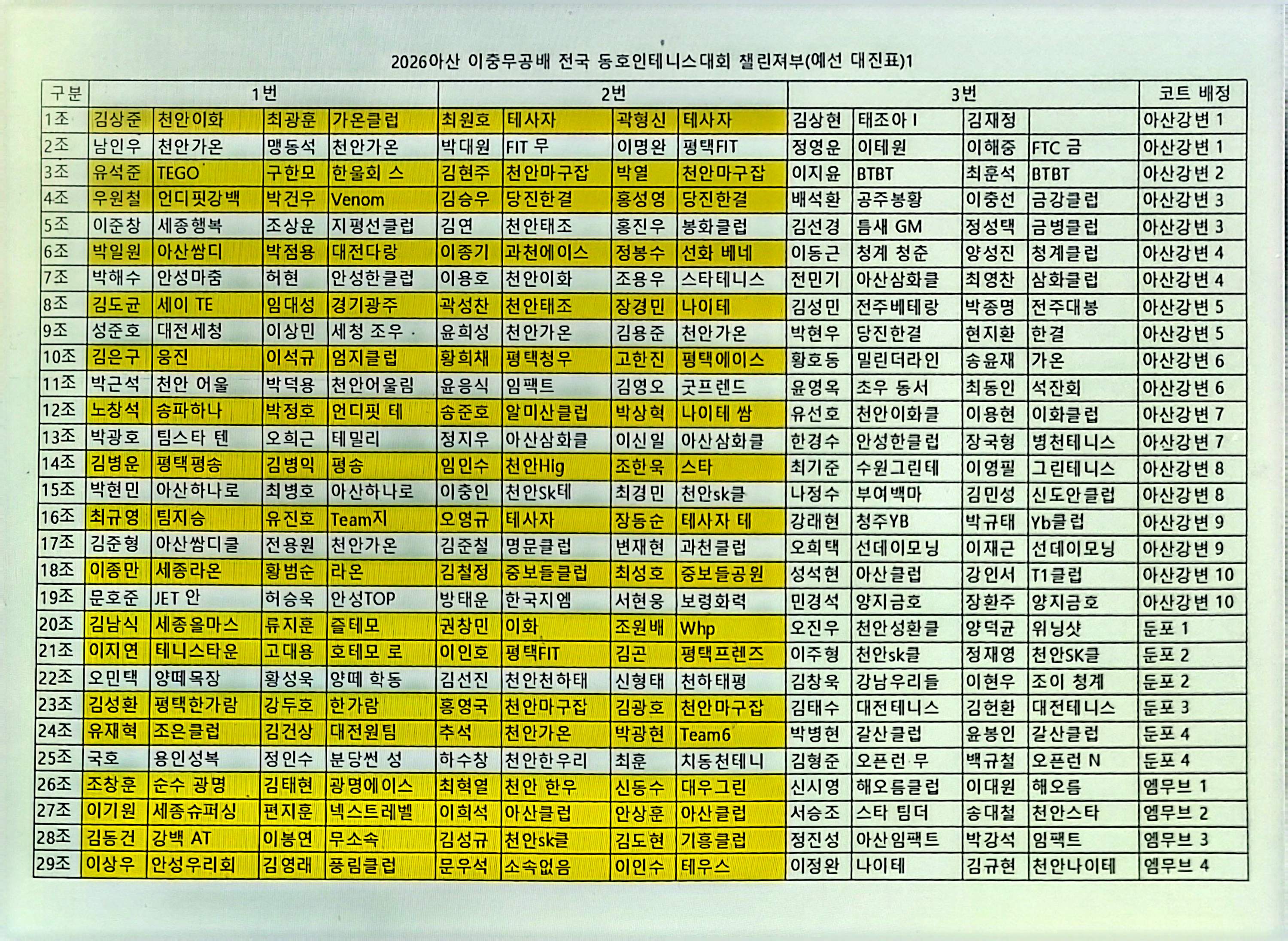 첫 경기 배정되신 선수분은 8시40분까지 출전신고를 해주시고 9시부터 경기 시작 하겠습니다.