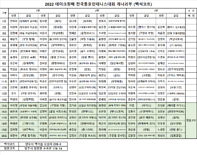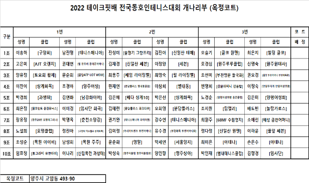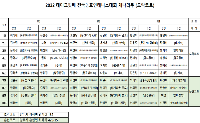 [알림] 2022 테이크핏배 개나리부 양주코트 배정표